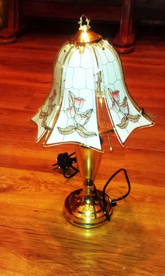 Zapala się po dotknięciu podstawy.Posiada 4 stopnie dotyku od zupełnie jasnej nastrojowej-1 stopień do wyłączenia-4 stopień.Wysokość lampki 46 cm.Polecam!!!Możliwość wysyłki.Posiadam 2 sztuki.Cena 80 zł.
